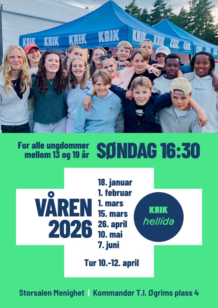 I tillegg til KRIK hellida på søndagene, er det Hellida fredag en fredag i måneden. Fredagene består av lovsang, tale, bønn og nattverd, og etter møtet er det kafé,spill, quiz og konkurranser!